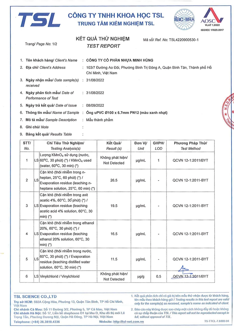 Giấy chứng nhận ống nhựa Polyetylen (PE100) và ống nhựa uPVC tiếp xúc trực tiếp với thực phẩm 02
