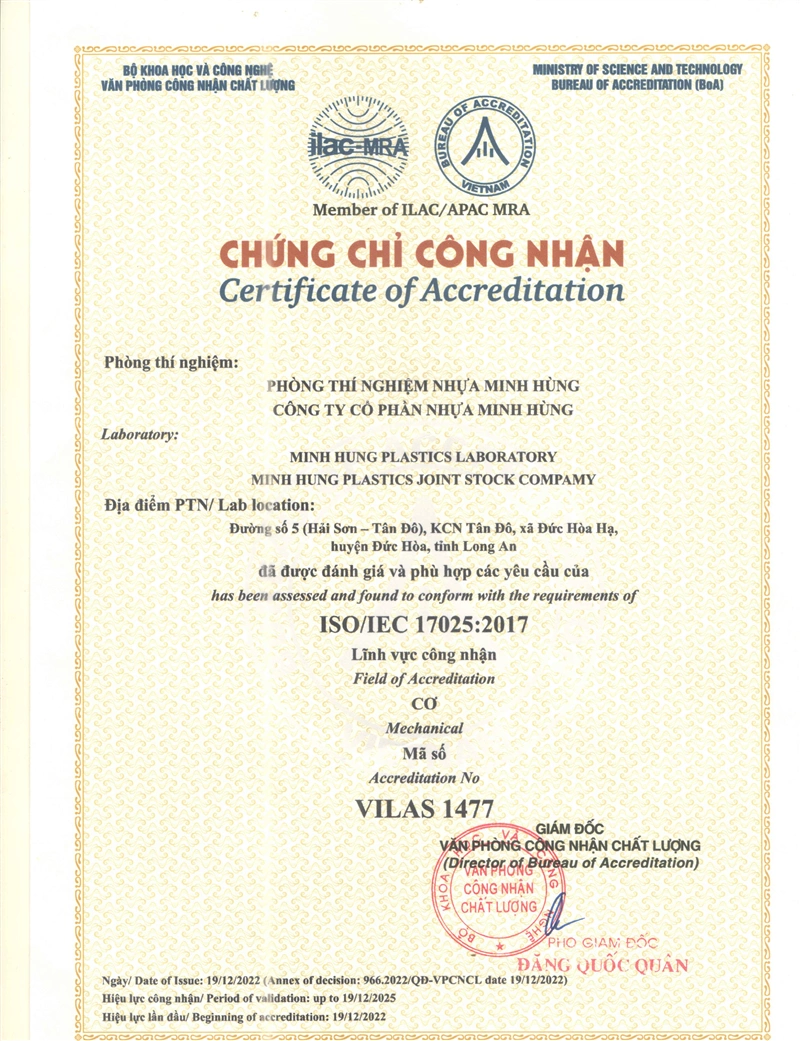 Chứng chỉ công nhận của văn phòng công nhận chất lượng (BoA)